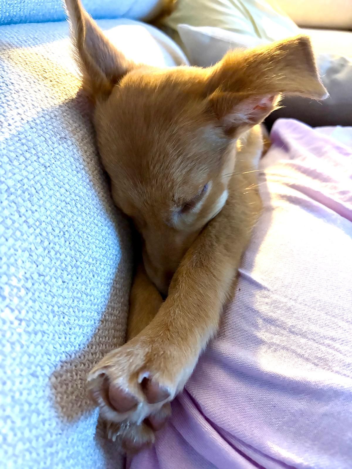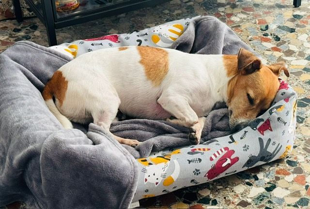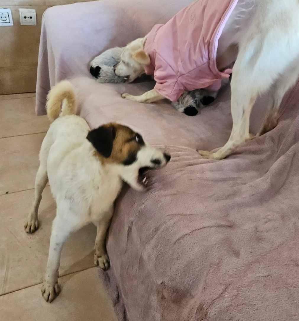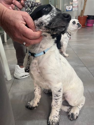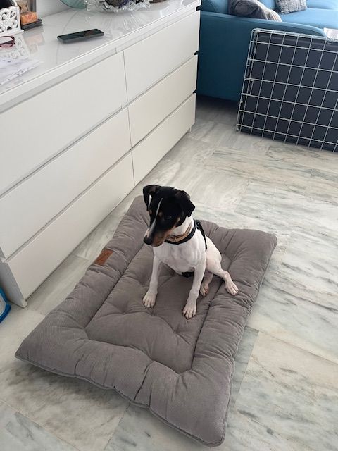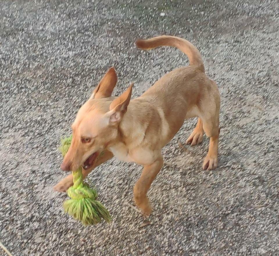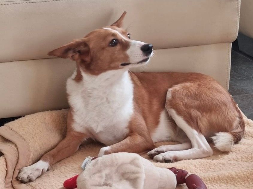 Our Bodeguero puppy DOMINO was in the clinic for many weeks with his leg broken in several places. We assume he was abandoned when he was only a few weeks old and then hit by a car. He was taken to the Perrera clinic with serious injuries, where I found him and was allowed to take him with me after his leg had healed 95%. Only then did he learn to walk and get to know his new world outside the clinic and begin to take part in life. After just a few weeks of care, he had also gained weight and we were convinced that it was now time to find him a permanent home. We were surprised that it happened so quickly. Justyna and Tarik got in touch - just one visit and they were hooked. That was just a few days before Christmas. Since then he has been in foster care there to see if he would be able to have a house cat - and lo and behold! It worked perfectly! He will now be adopted in January and already has his new name: WILSON! We think it fits perfectly!