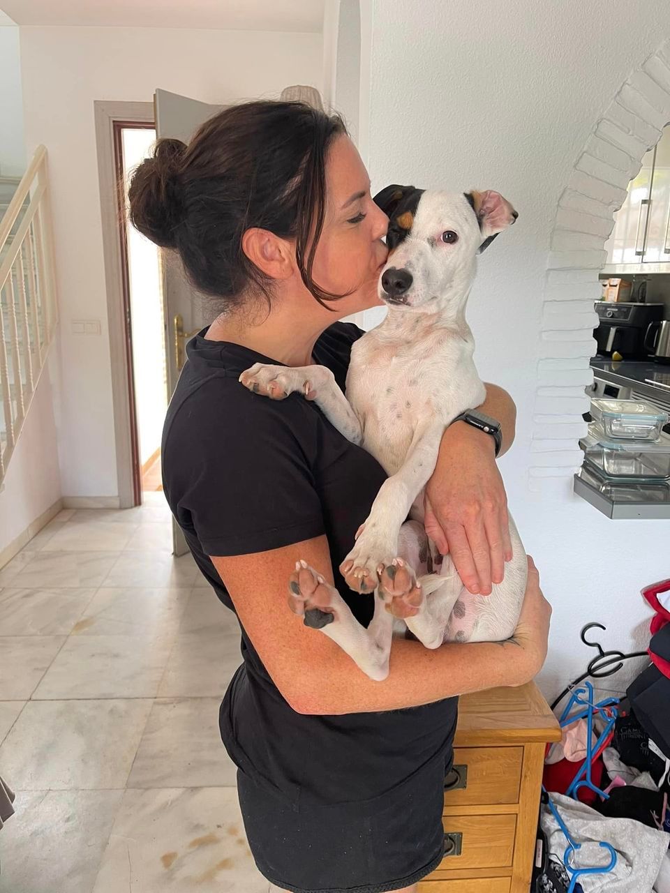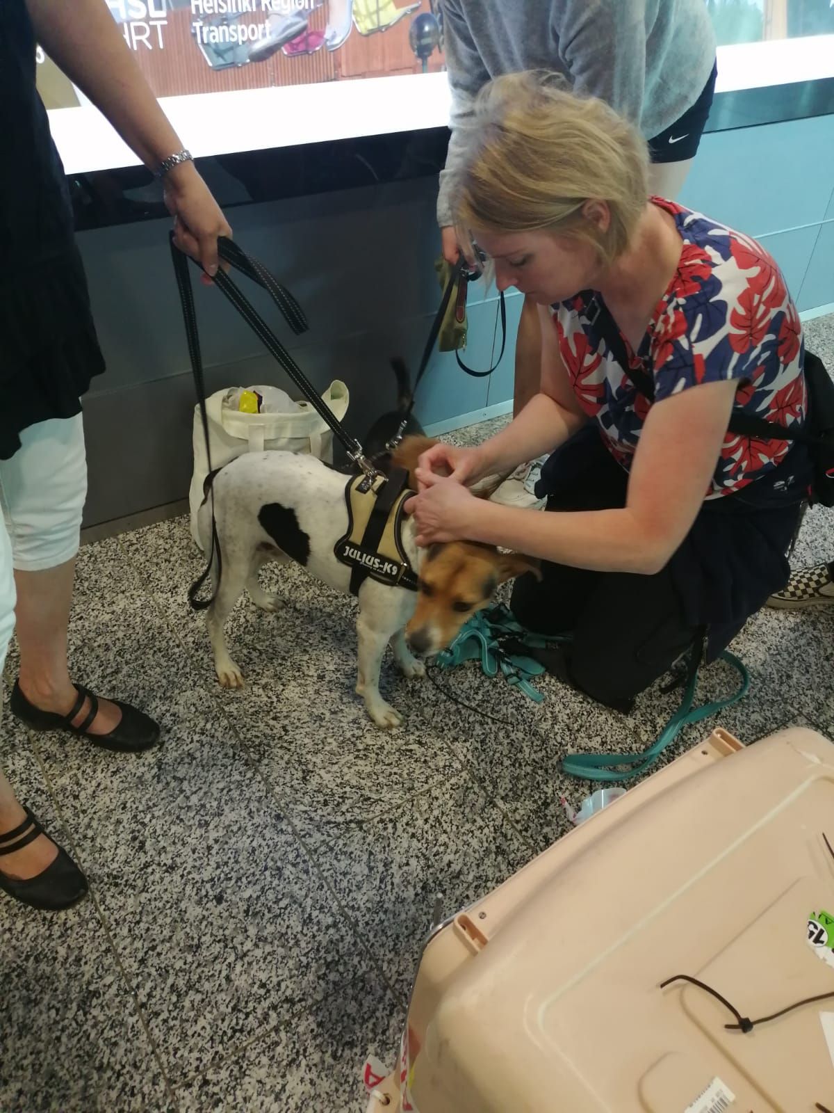 I'll always remember this day, when I met this "triple" Pebbels, Peanut and Simba at the shelter and also met their savior, Petra. I was blessed to spend some days with them and to know them better. Then came the days when I had to leave and something was going to bite the mind. At home my other 2 dogs were waiting for me. The adoption process was really simple. First I called Petra and we talked about Pebbles, then I took contact to the Finnish foundation. I filled out the forms and I was sure that Pebbles had received the necessary vaccinations and was negative blood tested. After a home check in Finland she was ready to travel. Finally we were so happy to meet her again, as if she had never forgotten. It was love at the first sight with my partner, too. I'm a little bid jealous, (hahaha). Now we have the happiest time of all our lives!