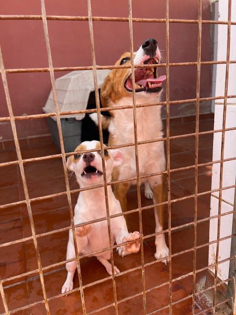 This is our 2 years old MIA. She was the most fearful dog I ever rescued from the perrera (photo on the left). She had been so mistreated that she no longer trusted anyone. Now about 6 weeks have passed in foster care and she is slowly starting to trust again (photo on the right). But it will still be a few weeks/months before she can be adopted. She will stay with us until she has overcome her trauma. Poor, sweet girl